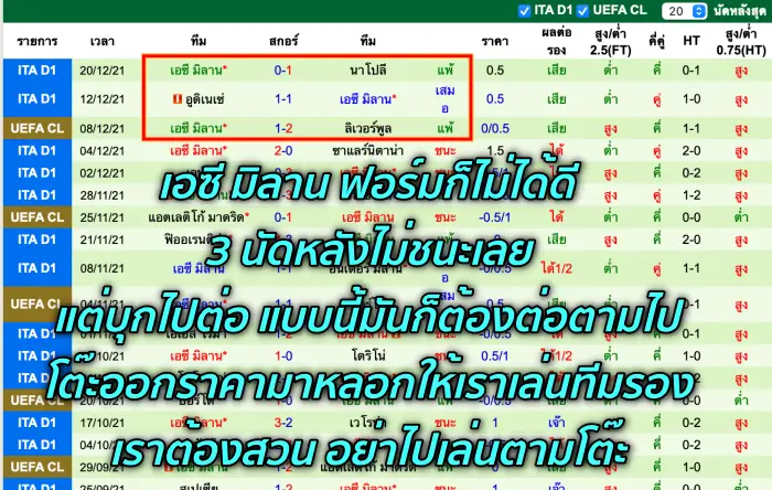 มาดูทีม เอซี มิลาน กันบ้าง โดยนัดล่าสุดที่ออกไปเยือนนั้น ไปแพ้ครับ แต่ว่าเกมนี้ยังบุกมาเป็นต่อทีมเจ้าบ้านที่ฟอร์มดีสุดๆได้แบบนี้ แสดงว่ามันต้องมีอะไรแล้วล่ะครับ แถมค่าน้ำยังเป็นทีมเจ้าบ้านได้เต็มอีกด้วย ราครบอลต่อ ครึ่งลูก แบบนี้ เล่นทีมต่อได้เลย