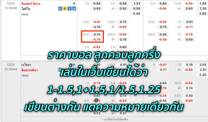โดยใครที่เล่นทีมต่อต้องเชียรืให้ชนะด้วยสกอร์ที่มีผต่าง 2 ลูก หรือมากกว่านั้น ถ้าชนะแค่ลูกเดียวจะเสียเงินครึ่งนึง เพราะว่ามันมีคำว่า ควบ อยู่ในราคาด้วย ถ้ามีคำว่า ควบ อยู่ มันจะมีการได้ครึ่งเสียครึ่งอยู่ด้วย