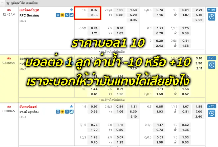 ราคาบอล 1 10 ราคานี้ต่อ หนึ่งลูก แต่ค่าน้ำ -10 หรือ +10 - fun88thaiwin.com
