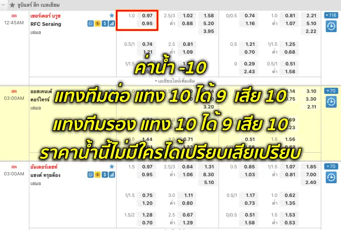 ทีมต่อหรือทีมรองเล่นในราคา -10 ได้เสียเท่ากัน