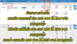 สำหรับอัตราการจ่ายในการแทงบอลแบบนี้ มันดูไม่ยากครับ โดยให้ท่านนั้นดูจากรูปด้านล่างเป็นส่วนประกอบได้เลยว่า มันจ่ายกันยังไง
